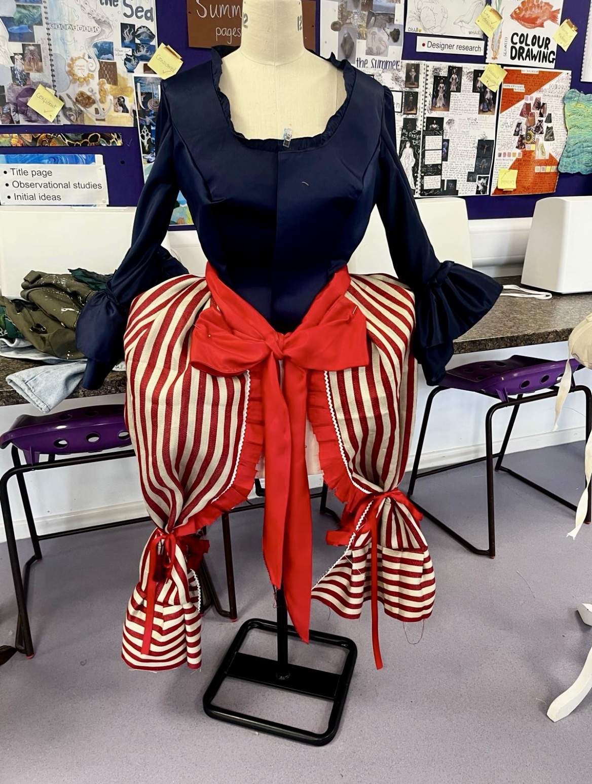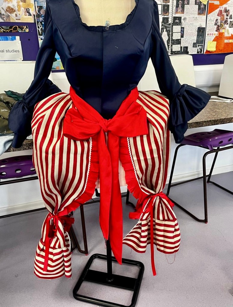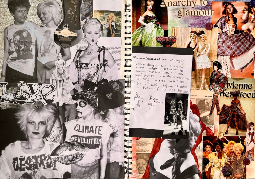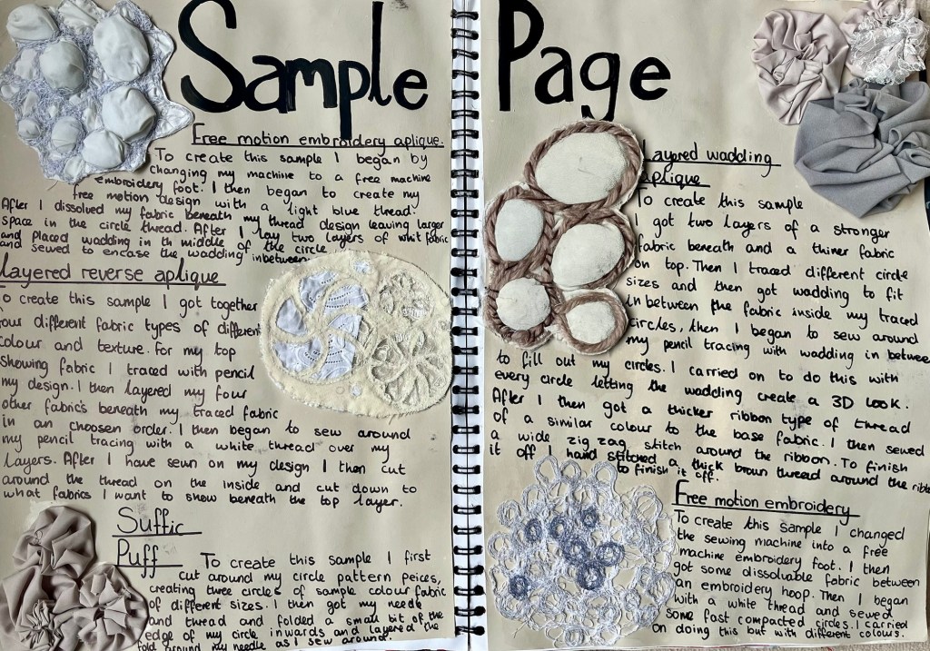 After looking at Vivienne Westwood’s work I then went on to research different textile techniques I liked from her work and I made some samples, such as the layered reverse aplique.